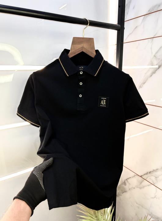 Home T-Shirts Arman_i Exchange Black Polo Neck Premium Collar T-shirt F1459-BL