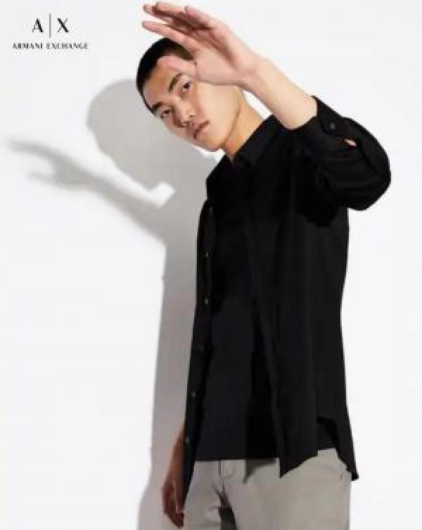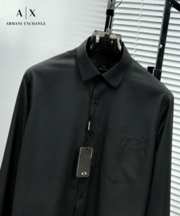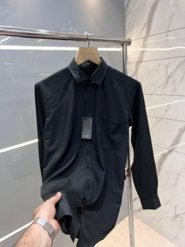 Arman i Exchange Black Premium Korean Lycra Imported Fabric Shirt With custom Branded Button Tagging and Pocket Embroidered Logo with Brand Packing 2799