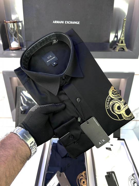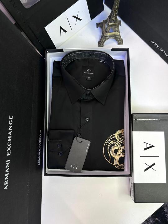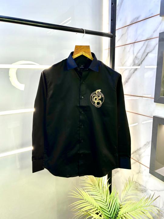 Home Shirts Arman_i Exchange Snake Logo Print Black Premium Shirt With Brand Box Packing And Carry Bag F2602-BL