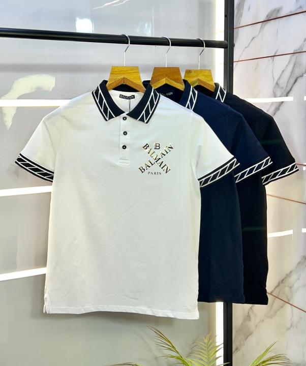 Home T-Shirts Balmai n Paris Logo Imported White Collar Neck Premium T-shirt F2831-WH