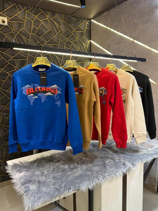 Bluorng Royal Blue Embossed Logo Print Imported Sweatshirt (1942)