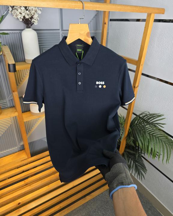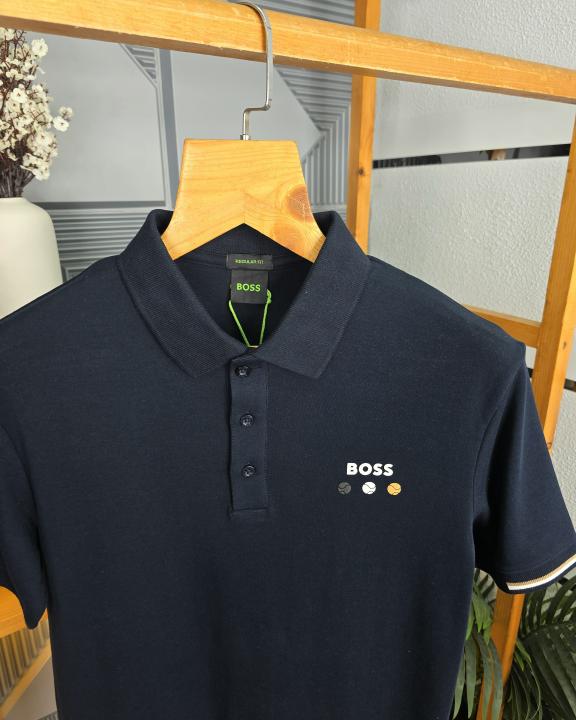 Hugo_Boss Black Embossed Logo Print Premium Collar Neck Polo T-shirt F1691-BL