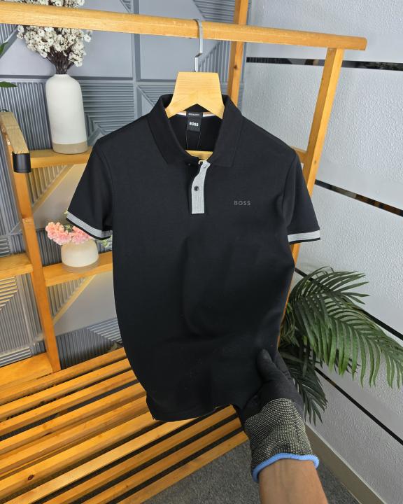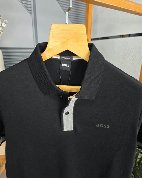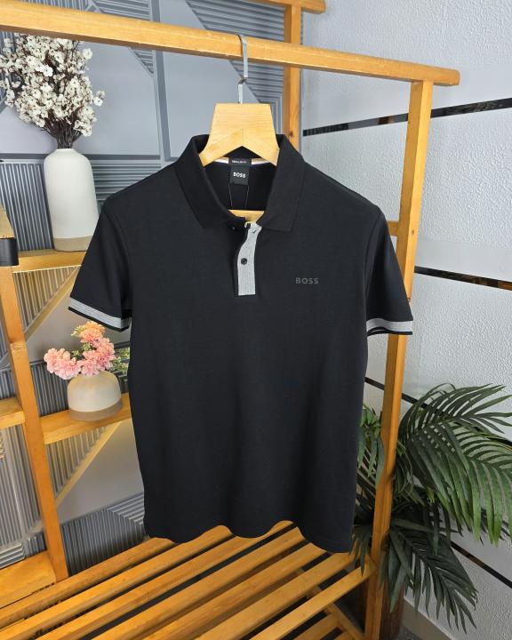 Hugo_Boss Black Embossed Logo Print Premium Collar Neck Polo T-shirt F1691-BL