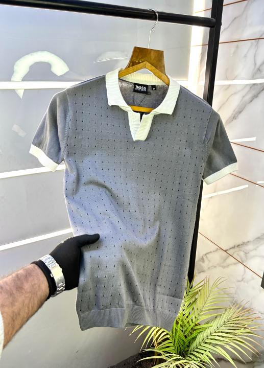 Home T-Shirts Boss Knitted Polo Grey Super Premium Collar Neck T-shirt F2754-GY