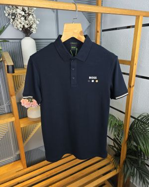 Hugo_Boss Black Embossed Logo Print Premium Collar Neck Polo T-shirt F1691-BL