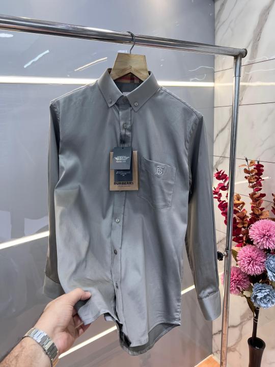 Burberr y Grey Premium Imported Embroidered Logo Shirt with custom Branded Button Tagging And Brand Packing 3251