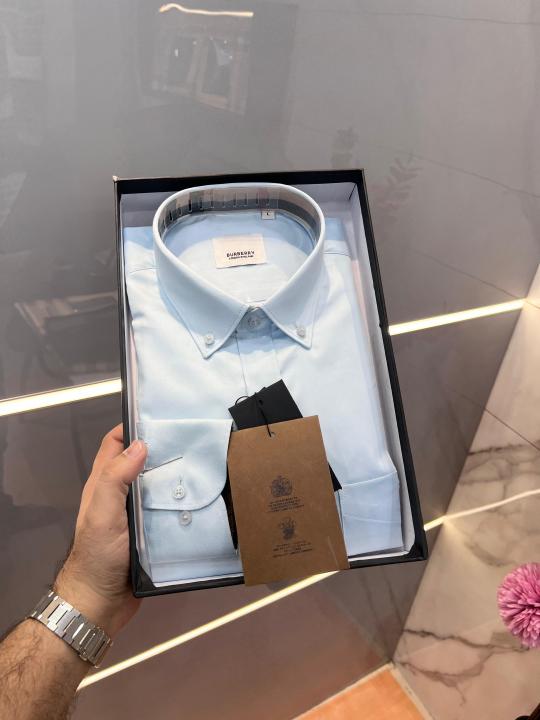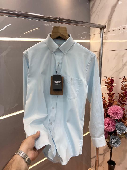 Burberr y Sky Blue Premium Imported Embroidered Logo Shirt with custom Branded Button Tagging And Brand Packing 3250