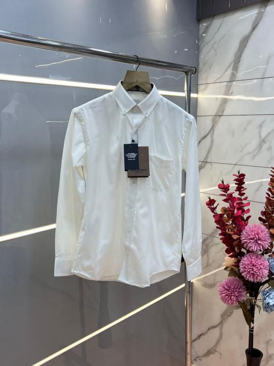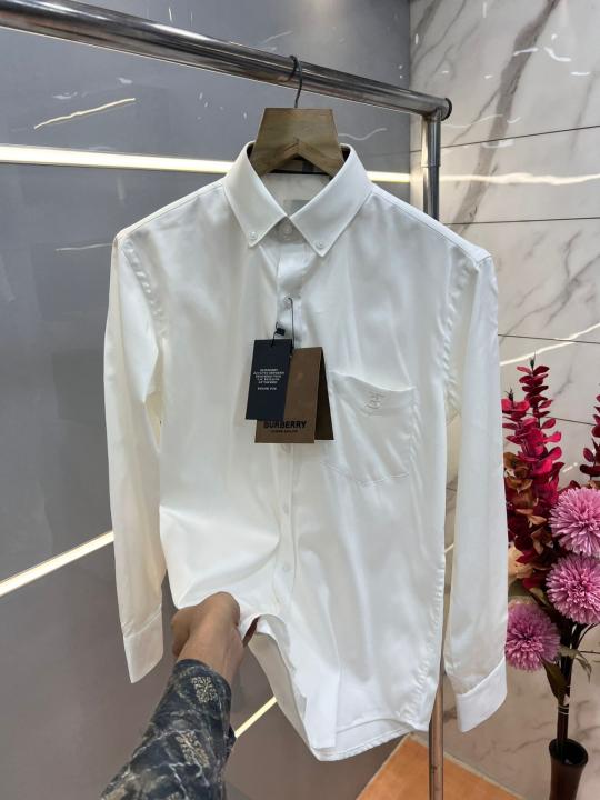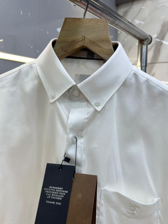 Burberr y White Premium Imported Embroidered Logo Shirt with custom Branded Button Tagging And Brand Packing 3254