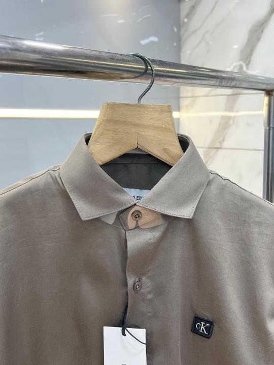 Calvin Klei n Brown Premium Imported Patch Logo Shirt with custom Branded Button Tagging And Brand Box 3724