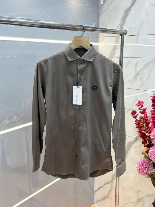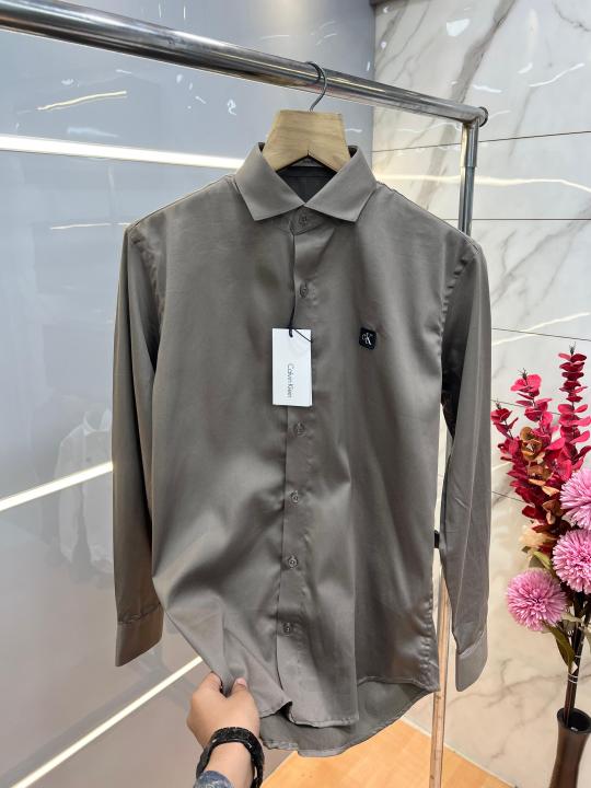 Calvin Klei n Grey Premium Imported Patch Logo Shirt with custom Branded Button Tagging And Brand Box 3723