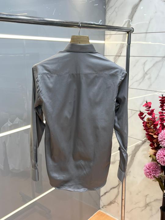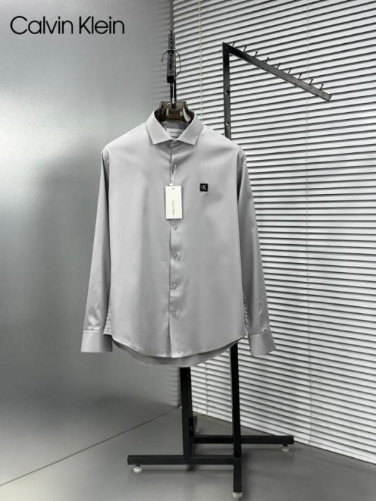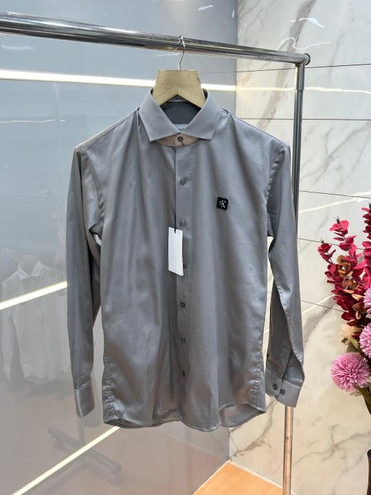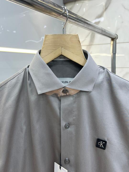 Home Shirts Calvin Klei n Grey Premium Imported Patch Logo Shirt with custom Branded Button Tagging And Brand Box 3723