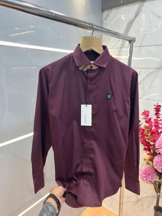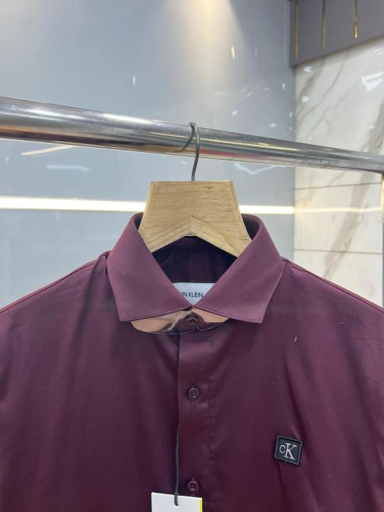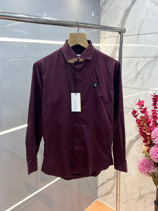 Calvin Klei n Maroon Premium Imported Patch Logo Shirt with custom Branded Button Tagging And Brand Box 3726