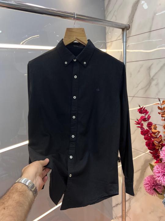 Calvin Klei n Black Imported Premium Shirt Layocell Linen Fabric With Embroidered Logo and custom Branded Button Tagging And Brand Poly Bag 3234