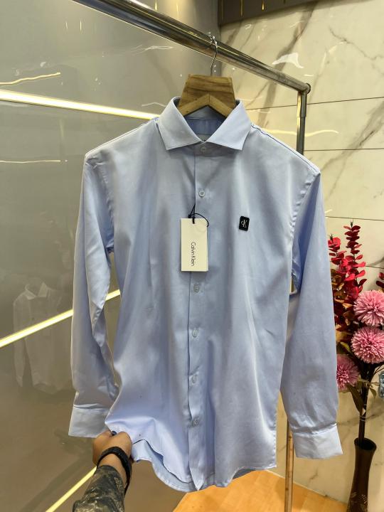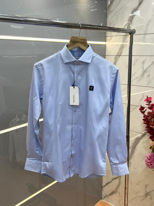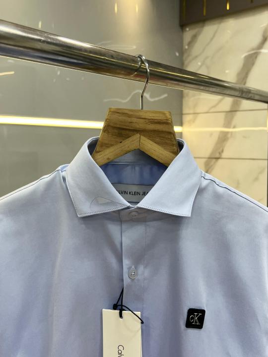 Calvin Klei n Sky blue Premium Imported Patch Logo Shirt with custom Branded Button Tagging And Brand Box 3725