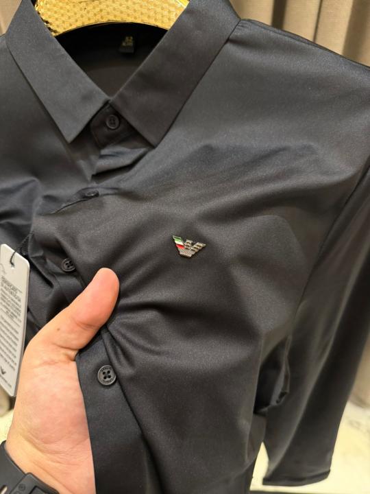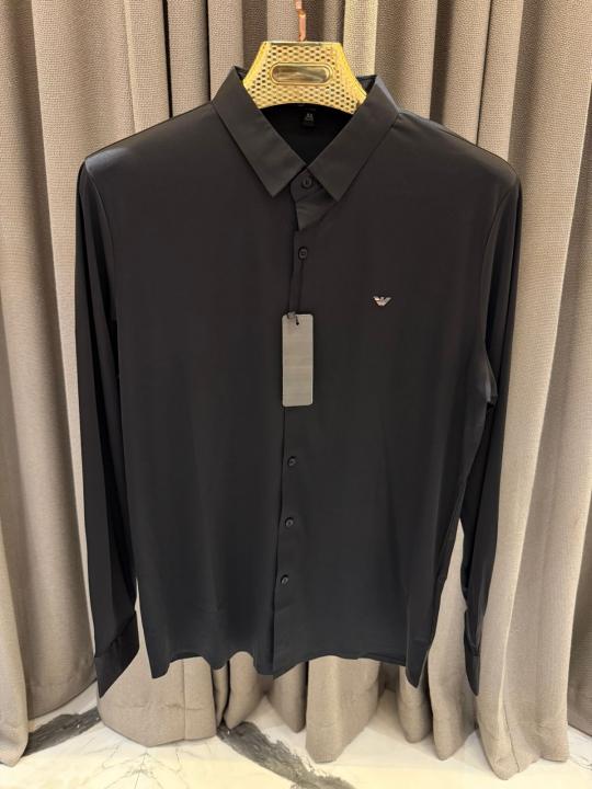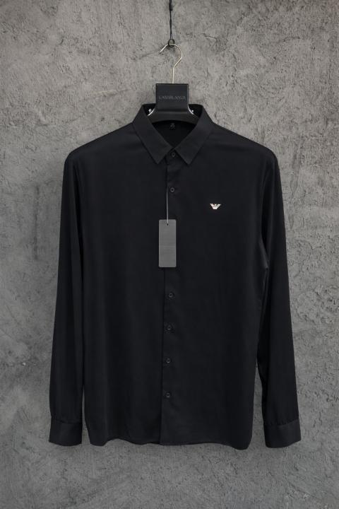 Emporio Arman_i Chest Logo Japanese Lycra Full Sleeves Stichless Shirt Black