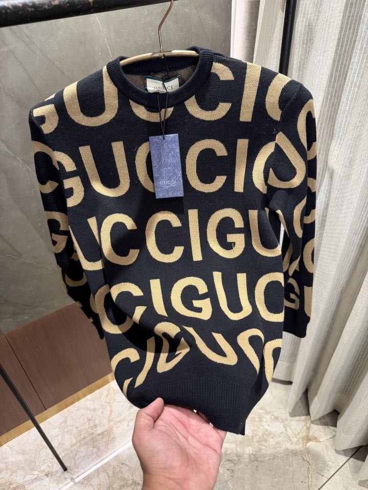 Gucc i Light Black Knitted Pullover Full Sleeves Knitted Lycra