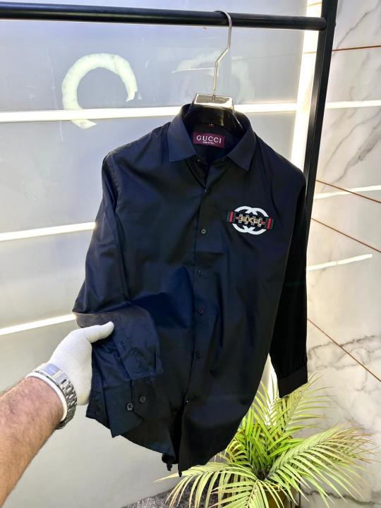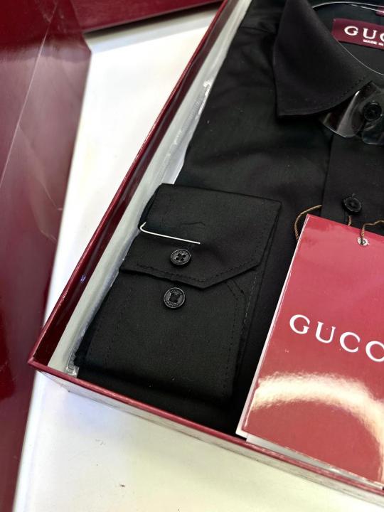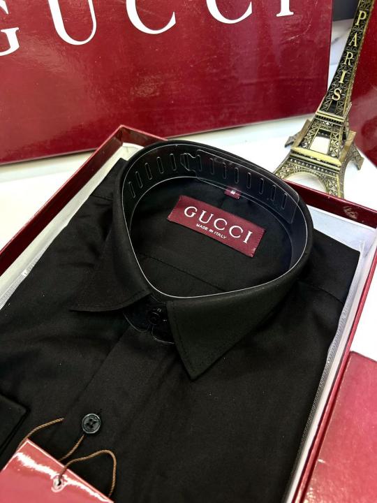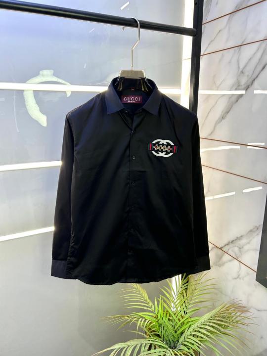 Home Shirts Gucc i Logo Black Premium Shirt With Brand Box Packing And Carry Bag F2855-BL