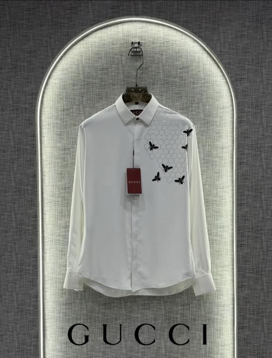 Gucc_i Velvet Bee Patched Sequence Imported Very Premium Shirt With Og Box & Bag (DN 508)