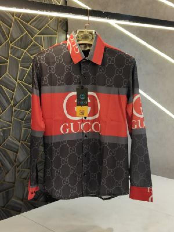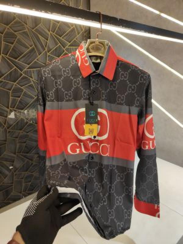 GUCCI_BLACK_PRINTED_PREMIUM_IMPORTED_SHIRT_WITH_BRAND_POLLY_BAG_(1695)