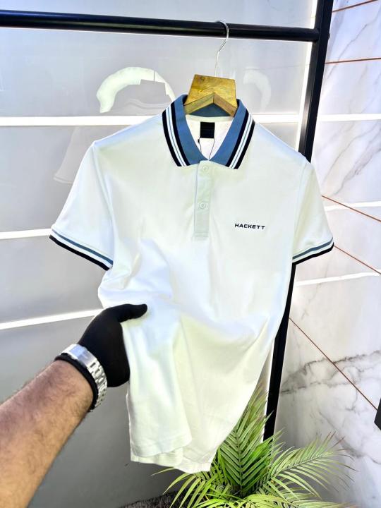 Home T-Shirts Hacket t London White Collar Neck Premium Polo T-shirt F2679-WH