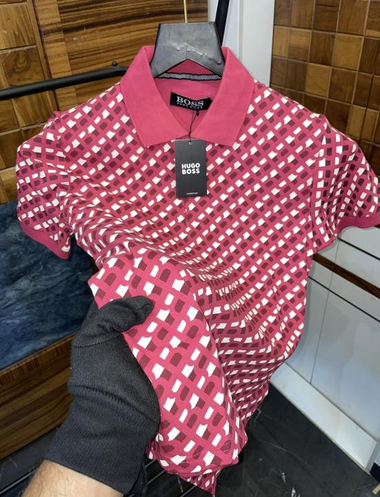 Hugo Bos_s All Over Monogram Print Premium Polo T-shirt