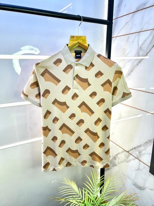 Home T-Shirts Hugo_Boss Beige Premium Collar Neck Polo T-shirt F3094-BE