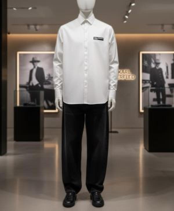 Home Shirts Karl White Premium Shirt Cotton Fabric with custom Branded Button Tagging And Brand Packing 3337