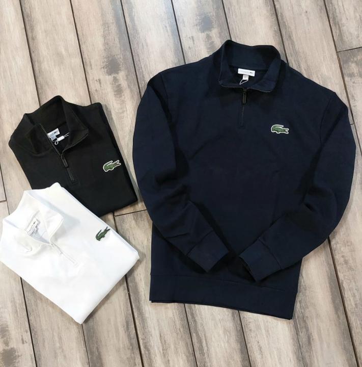 Lacost e White Interlock Fabric Heavy 380 GSM Premium High Neck Sweatshirt 3301