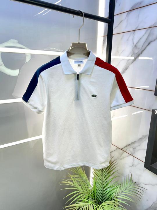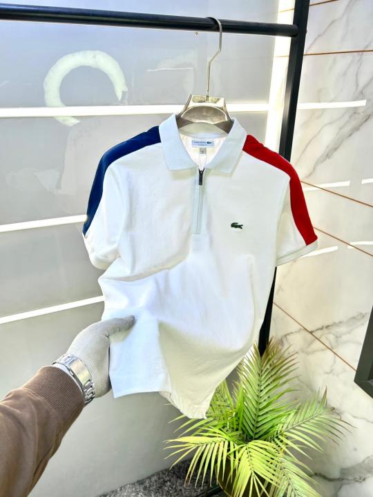 Home T-Shirts Lacost e White Polo Premium Collar Neck T-shirt F3424-W1