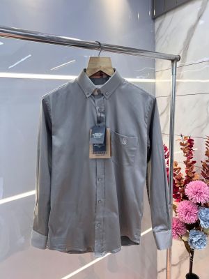 Burberr y Grey Premium Imported Embroidered Logo Shirt with custom Branded Button Tagging And Brand Packing 3251