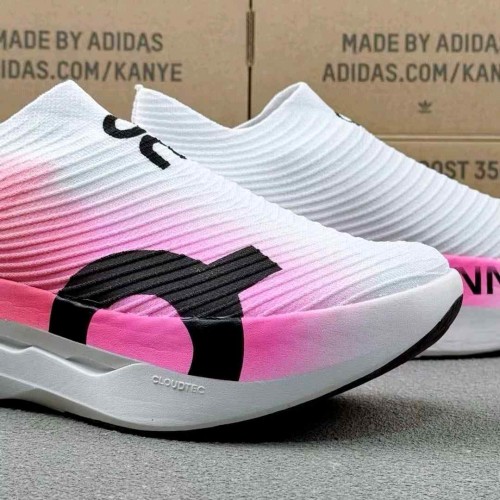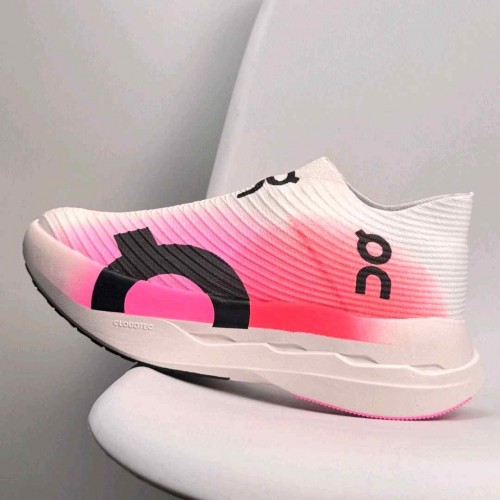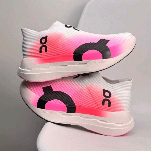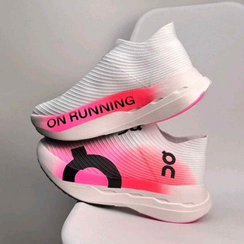 On Cloudboom Strike LS White and Raspberry