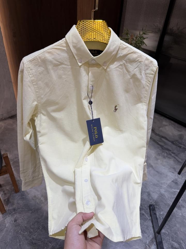 Home Shirts RALP_H LAUREN LIGHT YELLOW PREMIUM COTTON LOGO SHIRTS