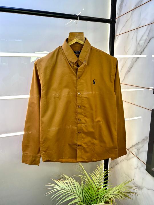 Home Shirts Ralph_Lauren Mustard Oxford Lycra Embroidery Logo Premium Shirt F2757-MU