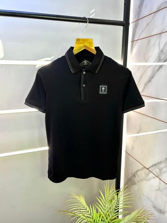 Home T-Shirts Rare Rabbit Black Polo Premium Collar Neck T-shirt F2921-BL
