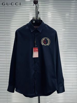 Gucc_i GG Embroidered Navy Blue Imported Very Premium Cotton Partywear Shirt With Og Box And Bag (DN 516)