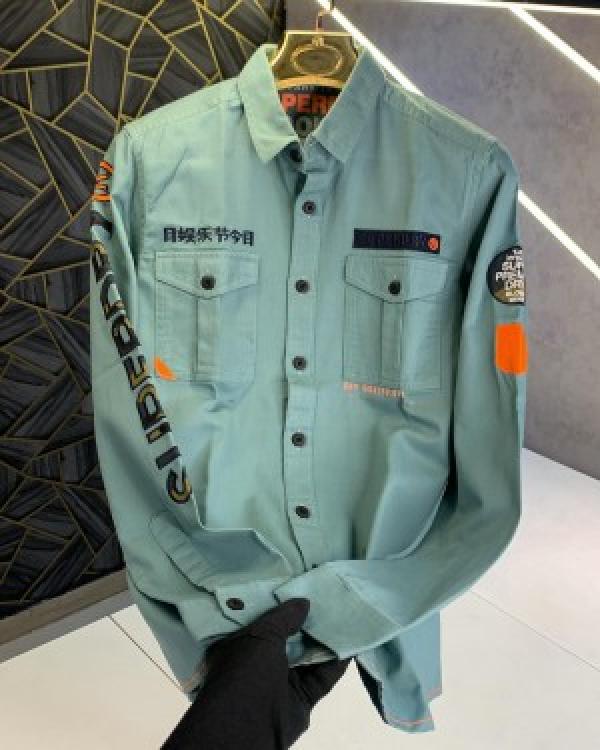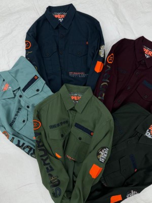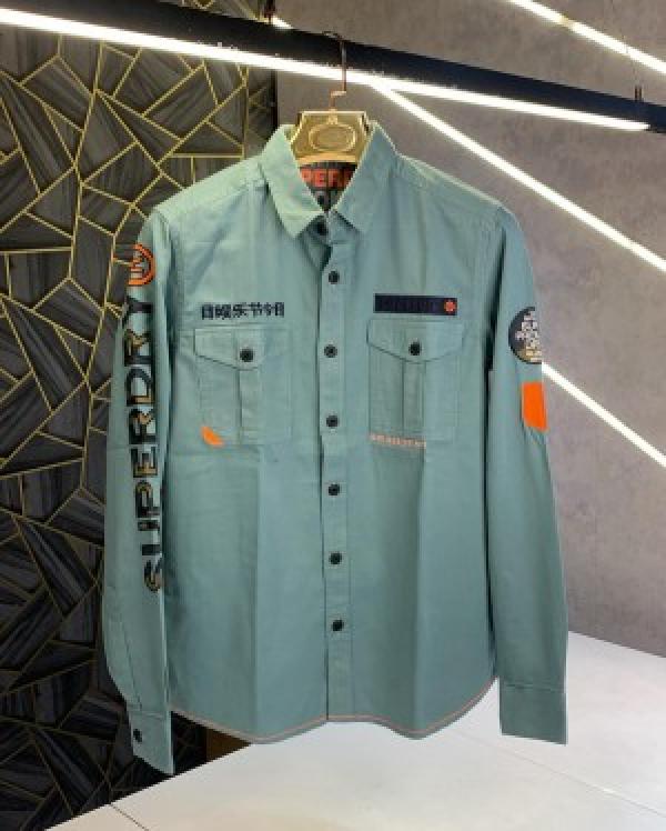 SUPER DRY EMBROIDERY PATCH WORK IMPORTED CARGO SHIRTS