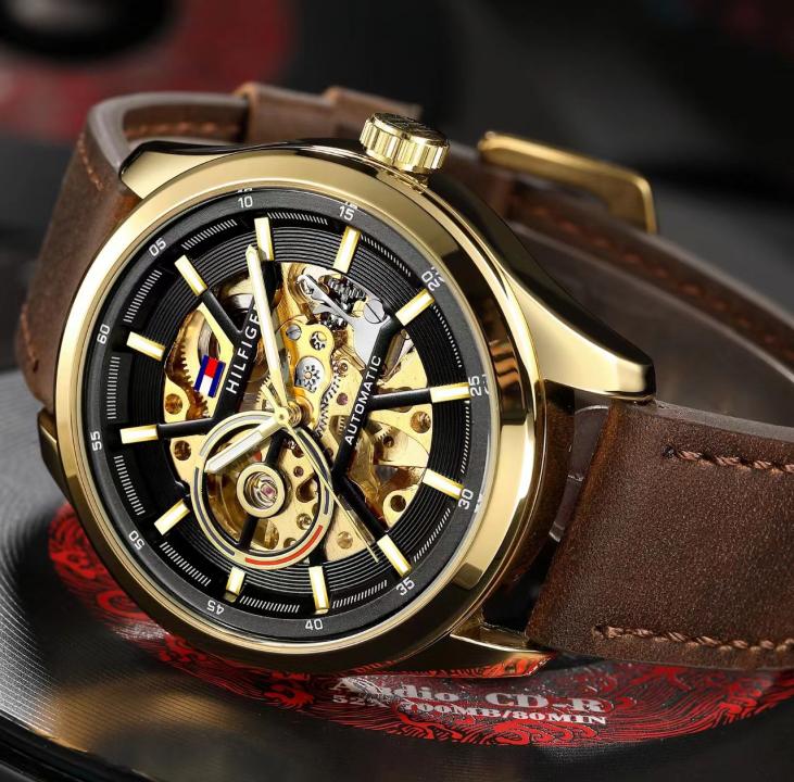 Tommy_hilfiger Automatic Leather DarkBrown-Gold-Black