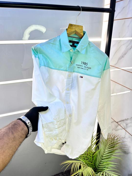 Tommy_Hilfiger Green Oxford Lycra Premium Printed Shirts F2751-G1