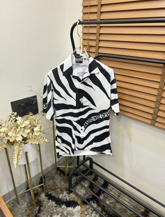 Versac_e Jeans Couture Black Zebra Patta Printed Imported Very Premium Half Shirt (DN 521)