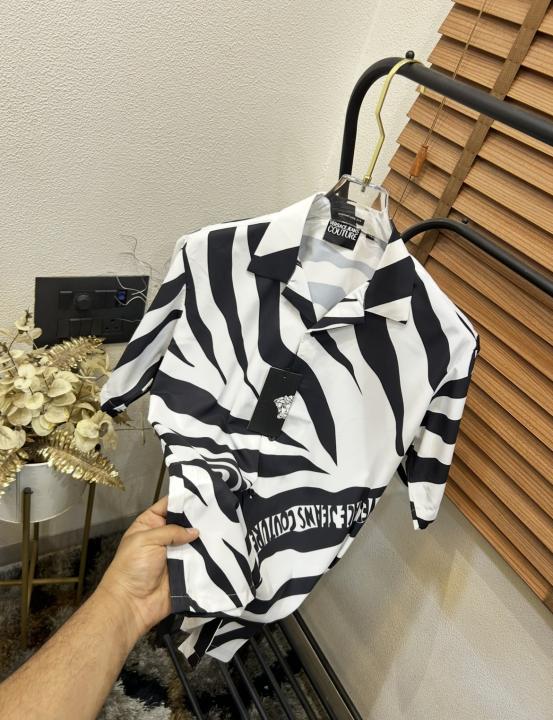 Versac_e Jeans Couture White Zebra Patta Printed Imported Very Premium Half Shirt (DN 521)