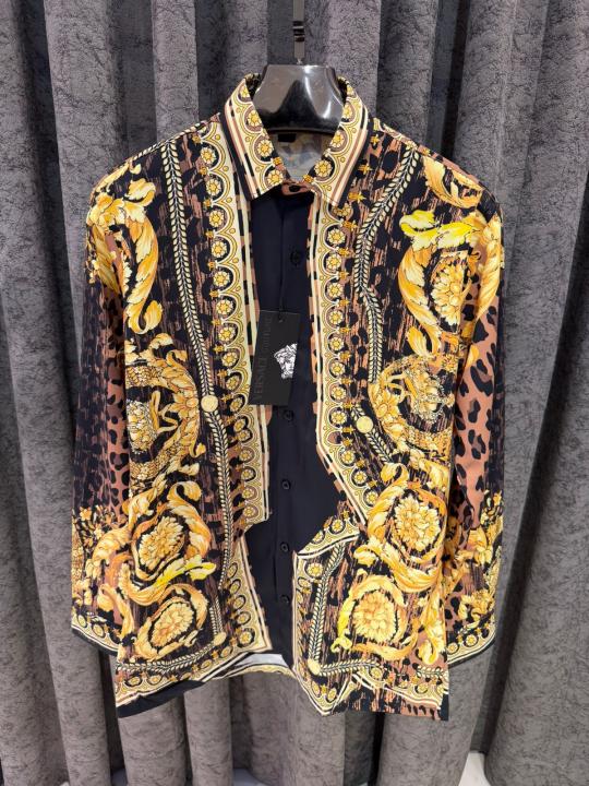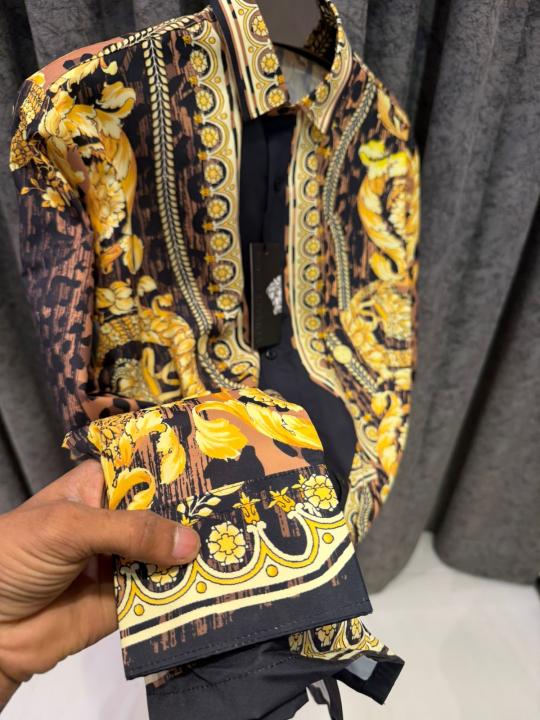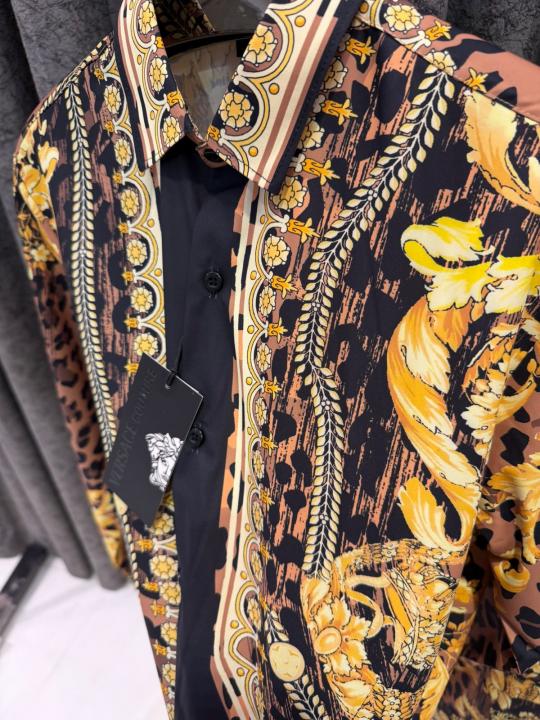 VERSACEE BOROCCO SHIRT IMPORTED HALF SLEEVES GOLD BLACK